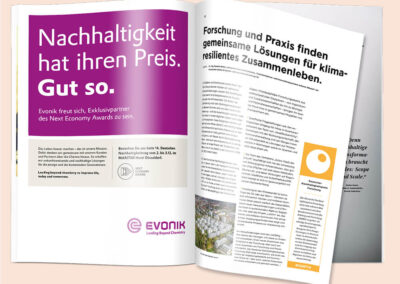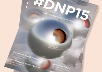 Wir betreuen und beraten die Stiftung Deutscher Nachhaltigkeitspreis e. V. in der ganzjährigen, klimaneutralen Produktion und sind für die Umsetzung zahlreicher Wettbewerbs- und Kongressmedien verantwortlich. Darüber hinaus wird das Magazin zum Deutschen Nachhaltigkeitstag, das als Beilage in der FAZ jährlich veröffentlicht wird, von uns gestaltet.