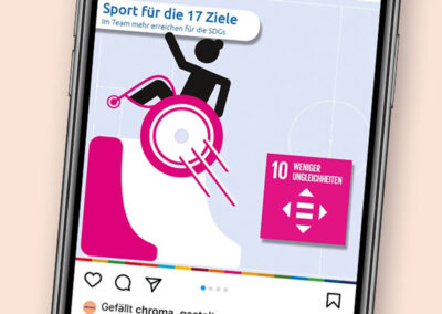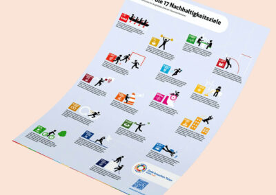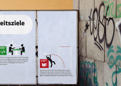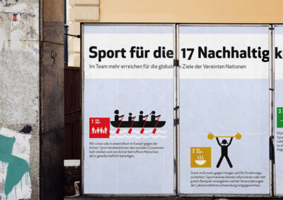 Die Regionale Netzstelle Nachhaltigkeitsstrategien West (RENN.west) fördert die Kommunikation über Nachhaltigkeitskonzepte und den Wissensaustausch darüber, vernetzt Akteure und gestaltet Nachhaltigkeitsprozesse in NRW, Hessen, Rheinland-Pfalz, dem Saarland und auf Bundesebene. Wir haben bereits diverse gedruckte und digitale Materialien gestalten dürfen und zuletzt sollte ein Kampagnenplakat für die 17 Nachhaltigkeitsziele im Bereich Sport entstehen.