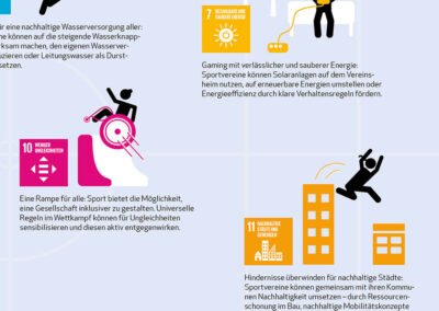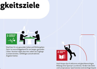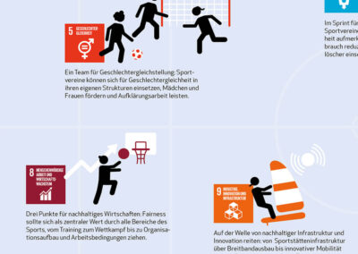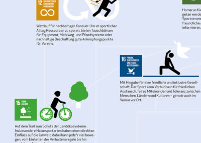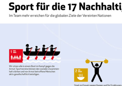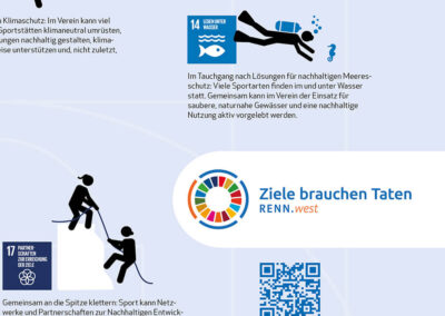 Im Rahmen der „Ziele brauchen Taten“-Kampagne von RENN.west, die die Sustainable Development Goals (SDGs) bekannter machen soll und Nachhaltigkeit im Sport stärkt, entwickelten wir (in Zusammenarbeit mit Bettina Strunk) ein Poster, dass die 17 SDGs illustriert und kompakt erklärt, und welche Handlungsmöglichkeiten der Sport hat, um zu den 17 Zielen aktiv zu werden.