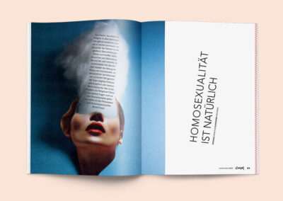 Wir haben 4 von 5 Ausgaben betreut und gestaltet, angefangen vom Kontakt mit den Redakteur*innen über Layout und Ausgestaltung der einzelnen Beiträge und Artikel – bis hin zur Druckvorbereitung und Abwicklung mit der Druckerei. We loved it!