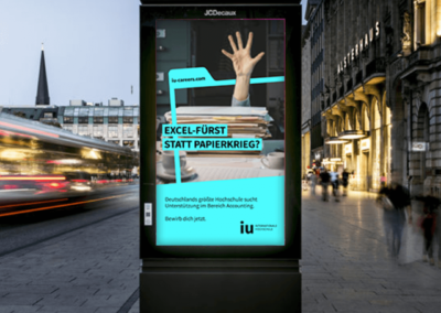 Das Team setzt sich aus diversen Mitarbeitenden fernab von Stereotypen zusammen. Ob Dozent*innen, Back Office, oder Marketing – hier verfolgen Menschen mit den unterschiedlichsten Skills eine gemeinsame Vision. Für diese Menschen wünschte sich die IU ein Employer Branding. Nach einer Analyse des Marktes und der Entwicklung einer neuen Employer Value Proposition sind mehrere Vorschläge zu Kreativrouten mit priorisierten Themenfeldern entstanden, die zu den Wertesystemen der Arbeitgebermarke IU passen.