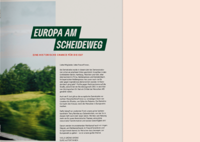 Wir haben das komplette Layout und das Design modernisiert und dem CD der Grünen mit eigenen Gestaltungsfreiheiten angepasst. Dazu haben wir neue Gestaltungselemente kreiert, einen neuen Illustrationsstil eingebracht und dem Magazin mit der frischen Farbigkeit einen neuen Lebenshauch verliehen. Hier könnt ihr es euch anschauen!